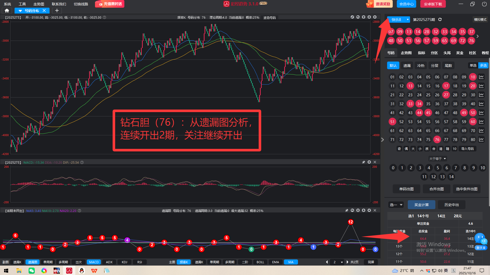 第20位:上期开出76,号码75超过91期没有开出,这期号码关注75 74