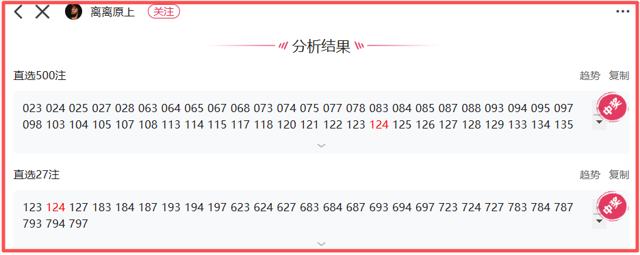 拆解其中奖逻辑便会发现,这27注号码源自定位3码复式的精准组号,而背后的核心秘诀,正是将彩经趋势软件、二阶遗漏工具与他自己的分析方法进行了巧妙融合!这般“专业工具+个人智慧”的搭配,为中奖筑牢了双重保障。
