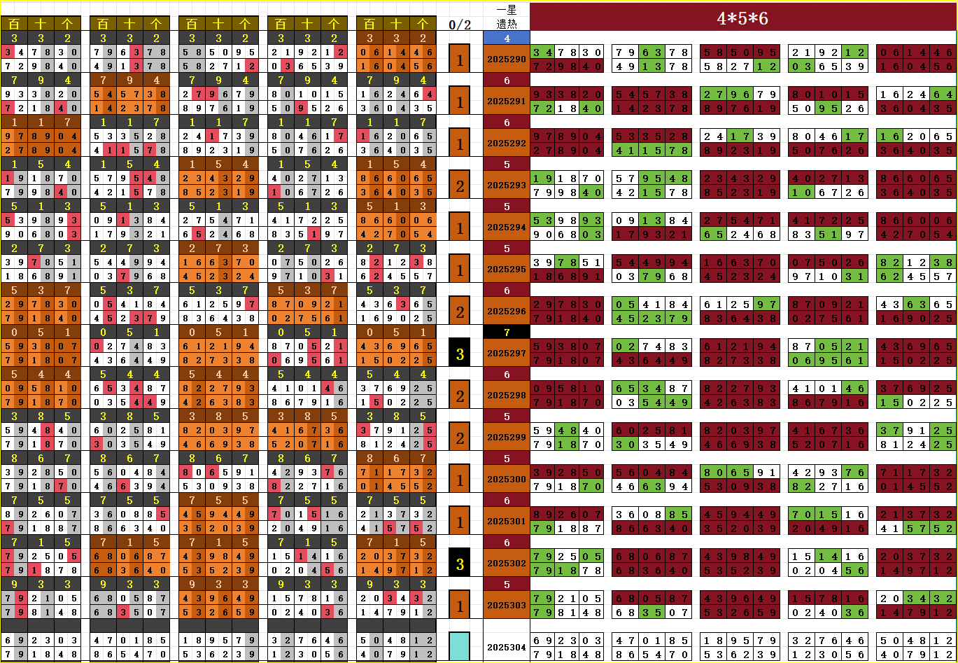 详情从历史开奖数据中进行相应的组合排列后,取概率最大的组合形态用来出码。准确率会在 60%--90% 之间波动,每期给出多个胆码组合。贴出的表格我无法详细说明,如有能看懂的,也可以根据表格自行分析。而我整理出来的号码,在思路详解里贴出。