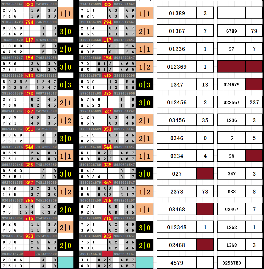 4 ,6,9出0,1 ,2趋势