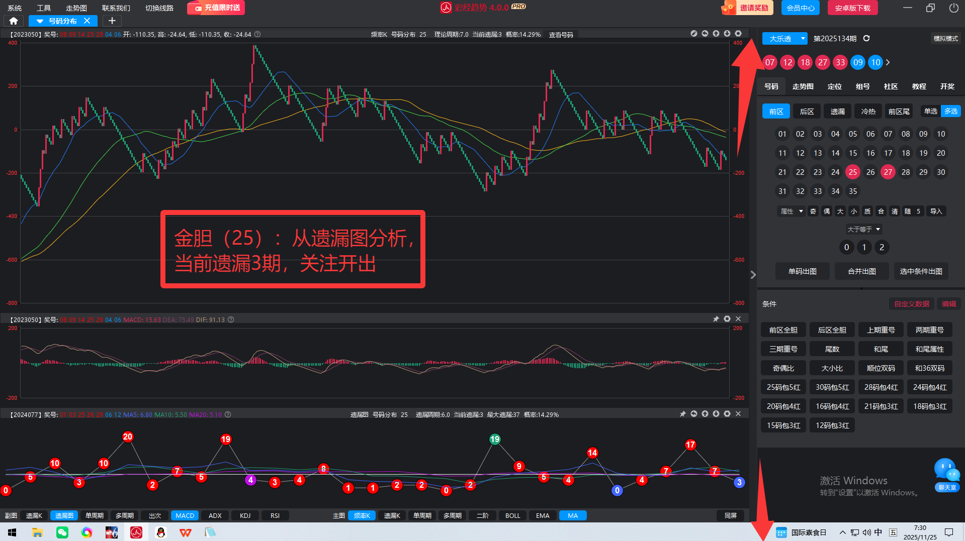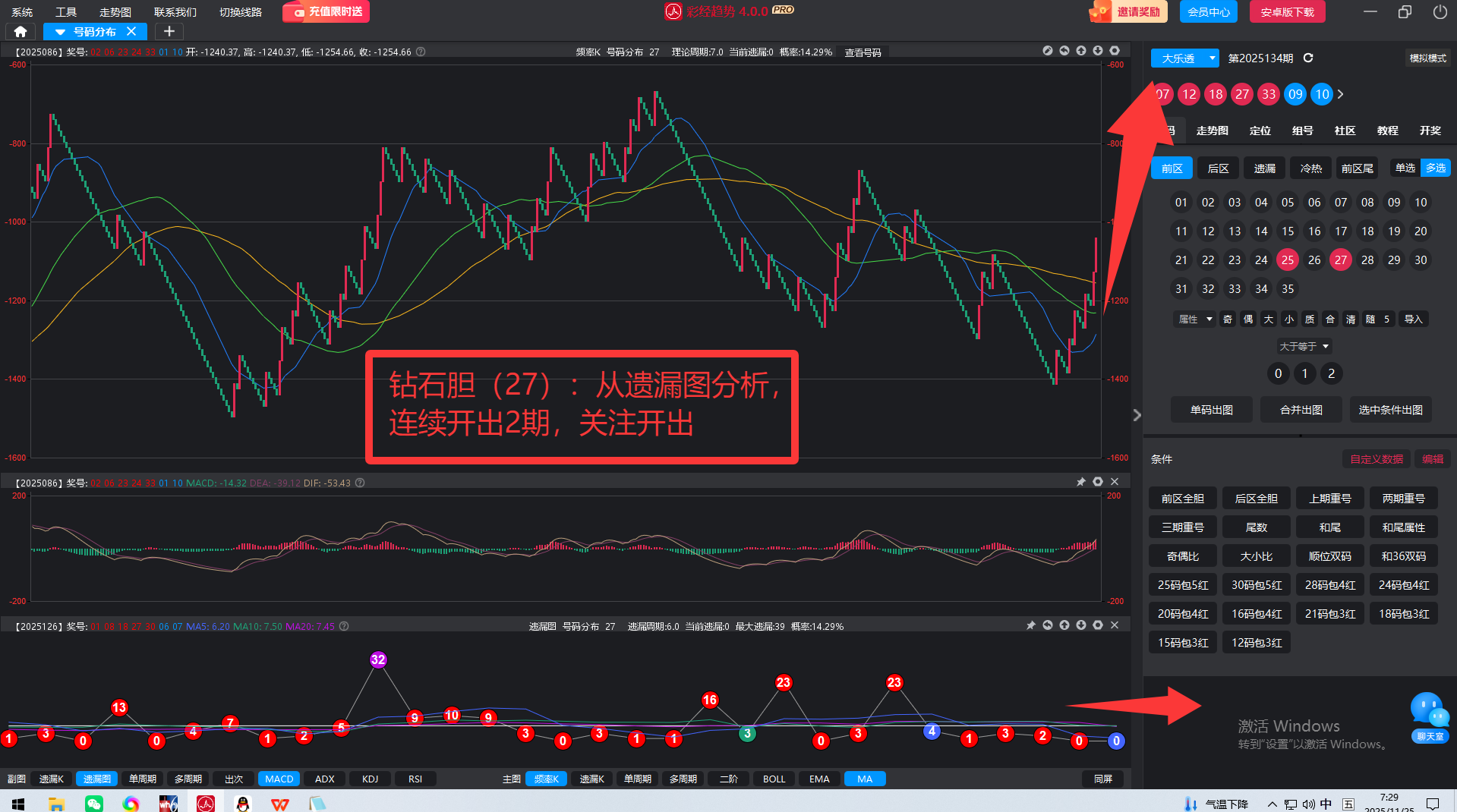 前区钻石胆27(备用胆25和14,可用于胆拖之用)